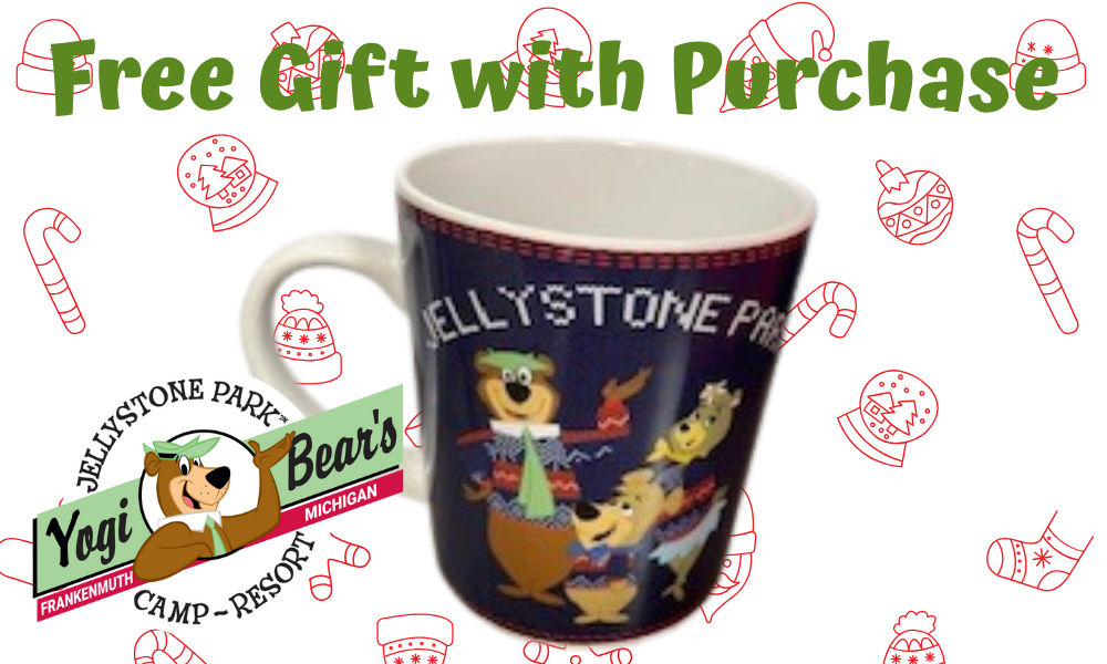Spend $35 or more on Camp Store items and get a FREE Christmas Mug — a $14.99 value! No other discounts apply Must mention this promotion at time of sale Valid through December 31, 2025 Available only at Frankenmuth Jellystone Park™