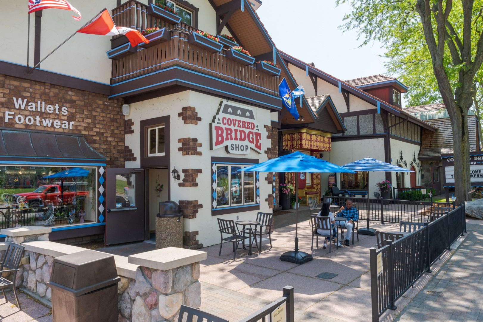 Located on the river in downtown Frankenmuth, find mid-Michigan's headquarters for Minnetonka Footwear. Discover Frankenmuth gifts, souvenirs and t-shirts for all ages and choose from a fine selection of leather belts, hats, wallets and handbags. Watch a free video on the construction of the Covered Bridge.