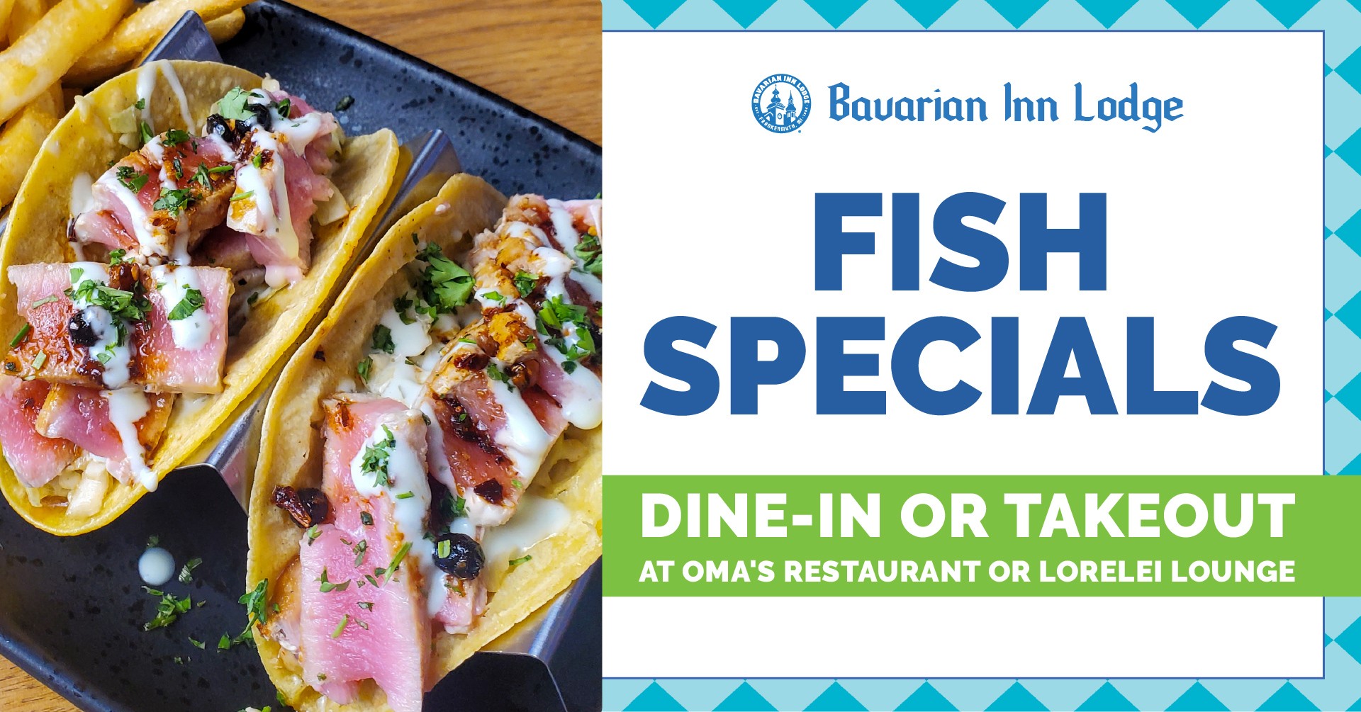 Join us for a delicious lineup of Fish Specials, available for dine-in or takeout at Oma’s Restaurant or the Lorelei Lounge!