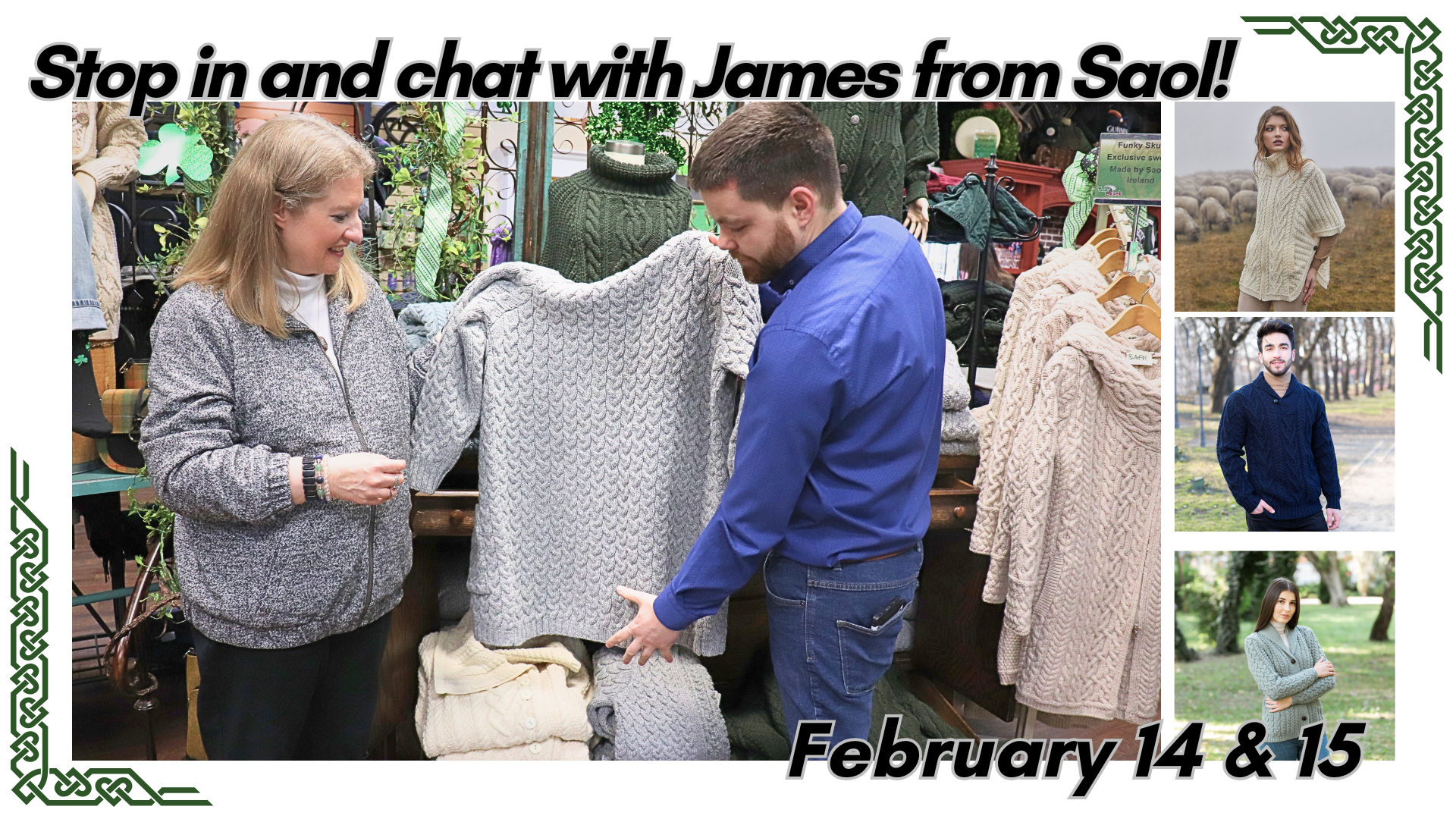Celebrate Irish craftsmanship with a special in-store event featuring SAOL knitwear. James from SAOL will be visiting from Ireland to share the story behind these beautifully made Irish sweaters - designed with traditional patterns, modern style, and timeless comfort in mind.