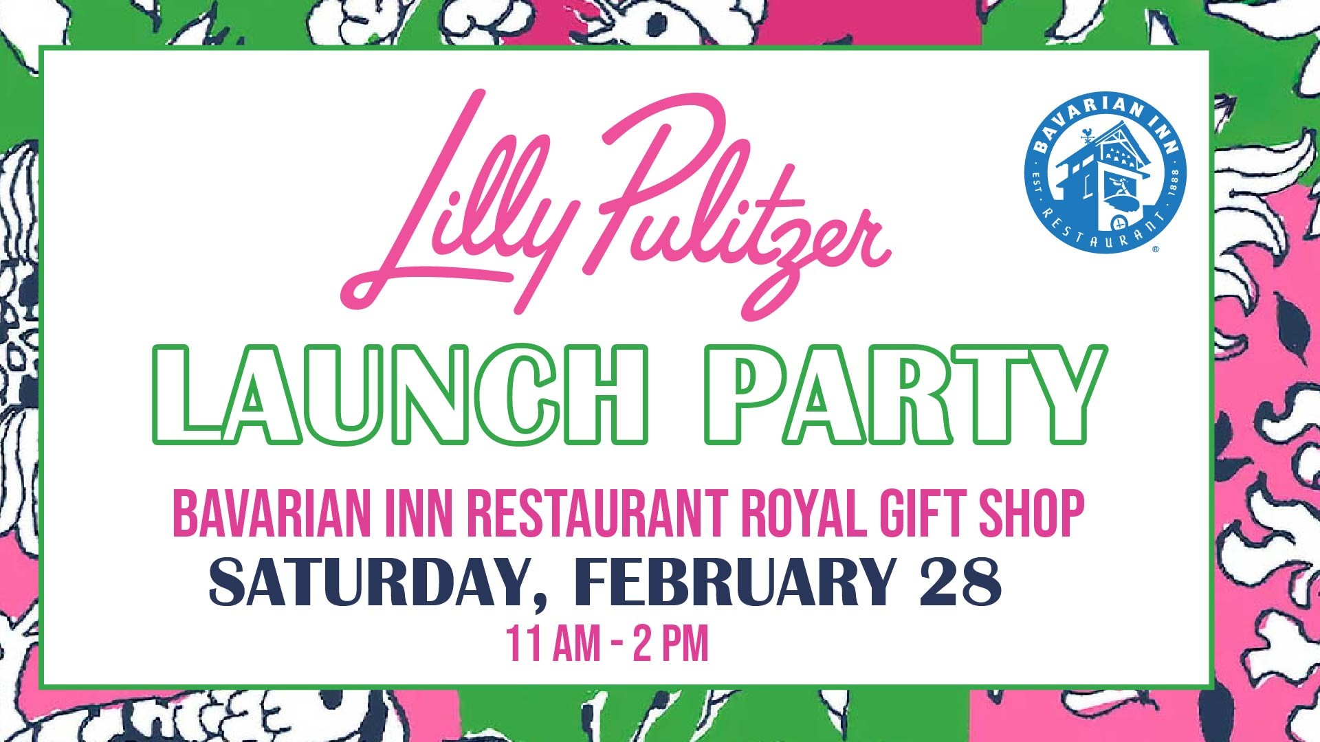 Bavarian Inn Restaurant is excited to announce that its lower-level Castle Shops’ Royal Gift Shop will now be carrying the iconic lifestyle brand Lilly Pulitzer. To celebrate, guests are invited to a special Lilly Pulitzer Launch Party on Saturday, February 28, from 11:00 a.m. to 2:00 p.m!