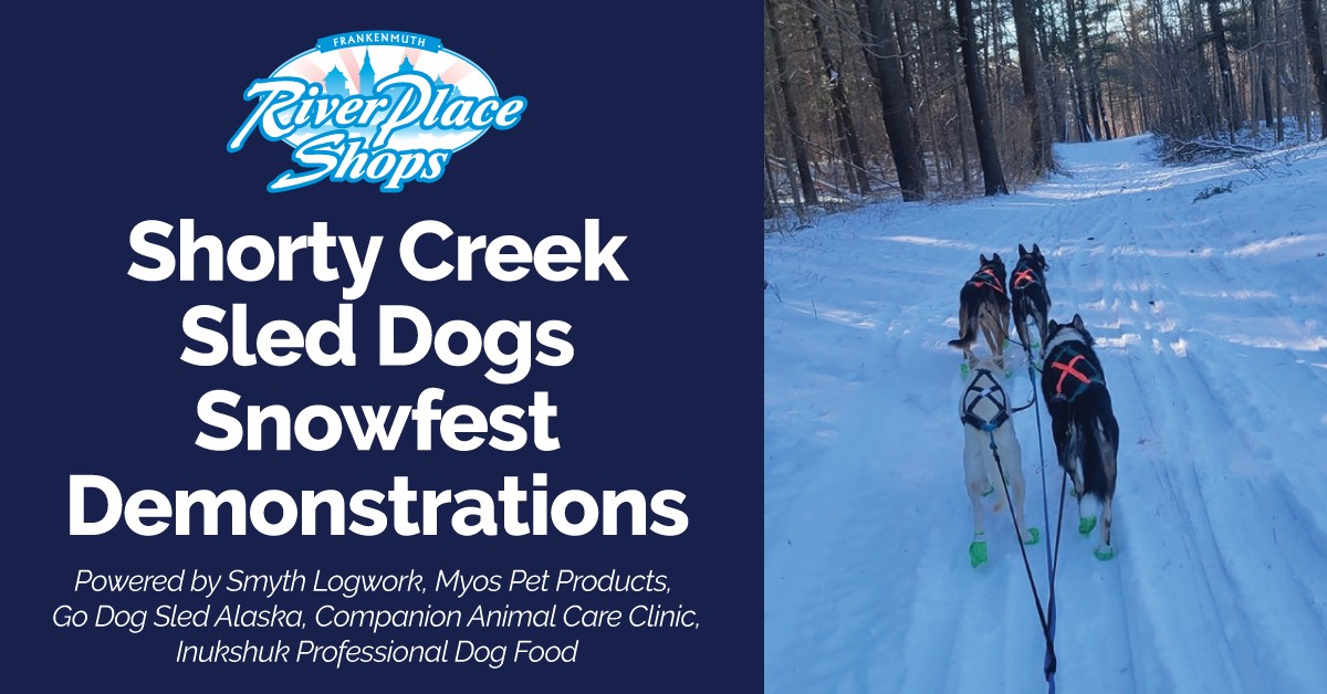 Shorty Creek Sled Dogs will be demonstrating mushing techniques, equipment use, and answering questions during Zehnder’s Snowfest at Frankenmuth River Place Shops! Shorty Creek Sled Dogs is a small and dedicated sled dog team located in Shelby Township, MI. Come enjoy a FREE demonstration at Frankenmuth River Place Shops outside, near N’Orlins & Charlins Book Nook. Demonstrations will take place on January 30, 31, and February 1. Want to try? For a fee, you can take a ride, mush one of our team, or try it with your own dog!