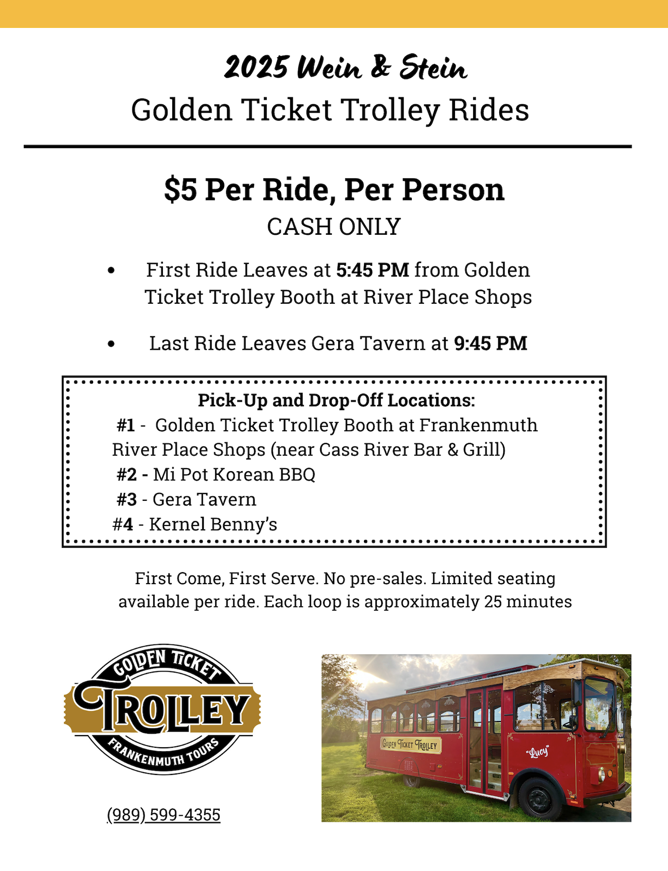 Tickets are available for purchase starting May 2nd at the Frankenmuth Visitor Center, 635 South Main Street. First 200 ticket holders will receive a free souvenir glass!